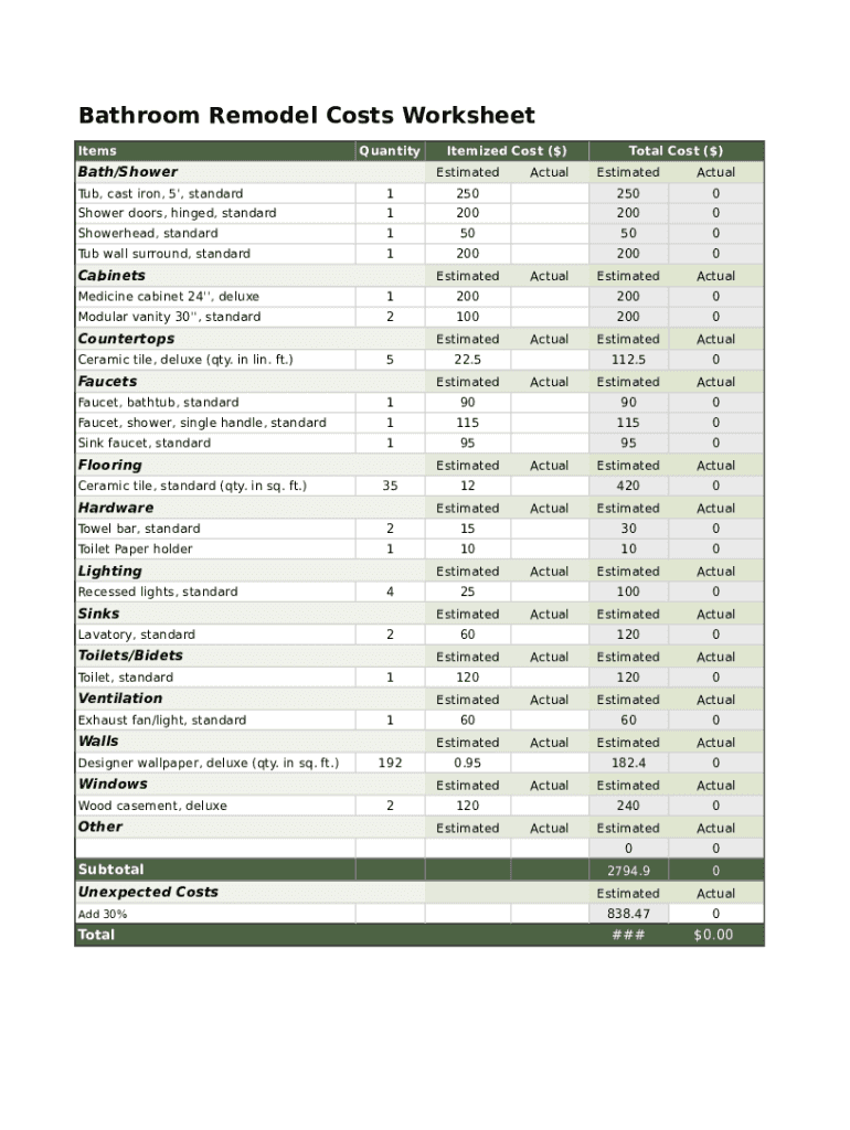 These features make the Bathroom Remodel Costs Worksheet a vital part of any home improvement project.