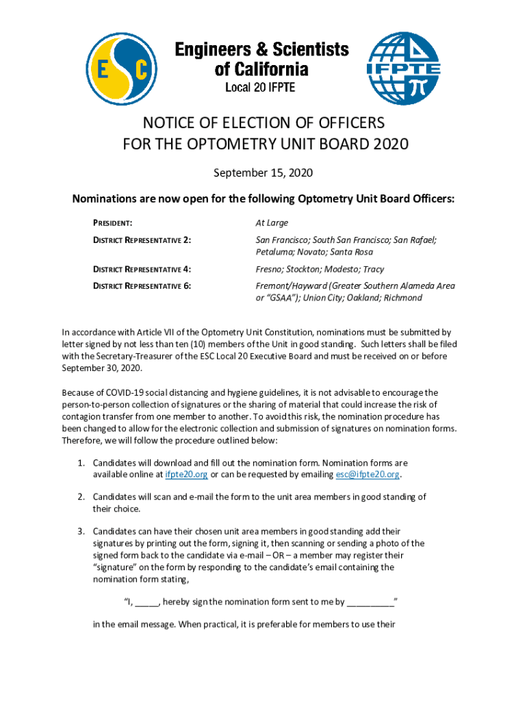 Get the free NOTICE OF ELECTION OF OFFICERS FOR THE OPTOMETRY UNIT ...