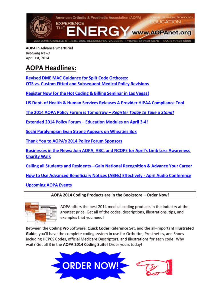 APA In Advance Smarties Breaking News April 1st, 2014AOPA Headlines: Revised DME MAC Guidance for Split Code Outhouses: ITS vs. Custom Fitted and Subsequent Medical Policy Revisions Register Now for