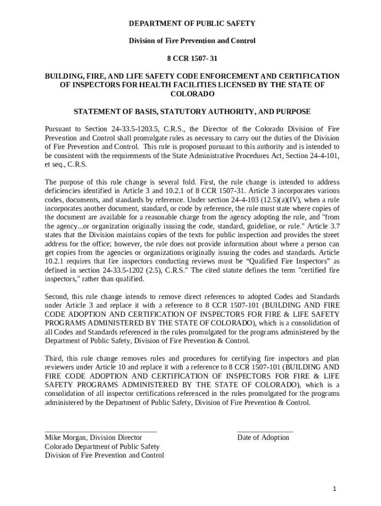 How to fill out definition of fire and life safety code officials - Code of Colorado ...