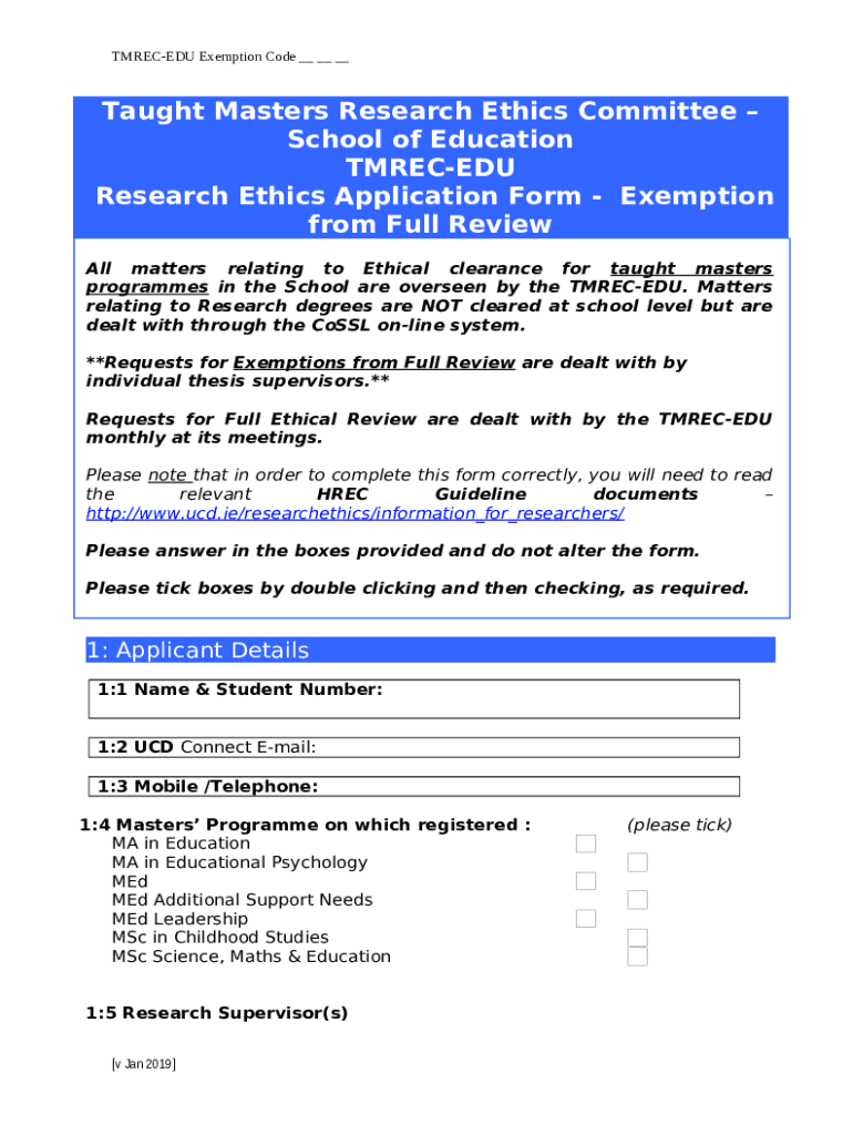 Template Taught Masters Research Ethics Committee - School of Education instructions