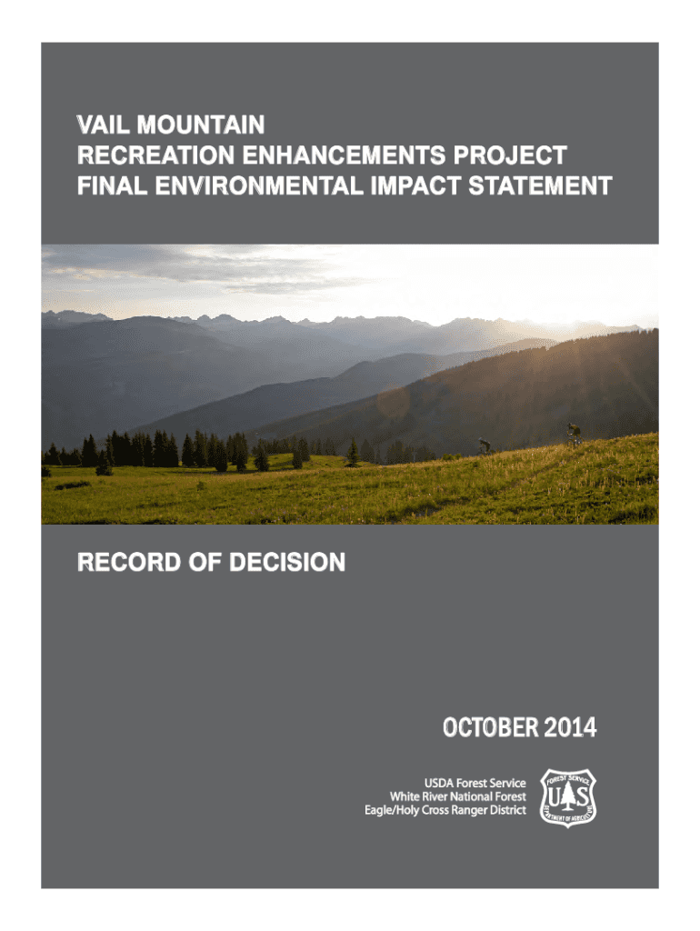 Get the free Record of Decision. Vail Mountain Recreation Enhancements Project Final Environmenta...