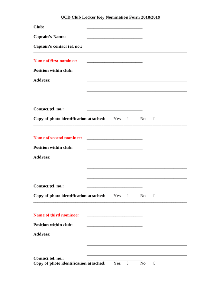 What is UCD Club Locker Key Nomination 2018/2019 Club ... Form?
