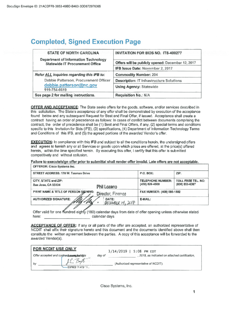 STATE OF NORTH CAROLINAINVITATION FOR BIDS NO. ITS400277Department of Information Technology