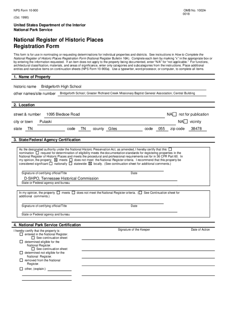 NPS Form 10900OMB No. 100240018(Oct. 1990)United States Department of the Interior
