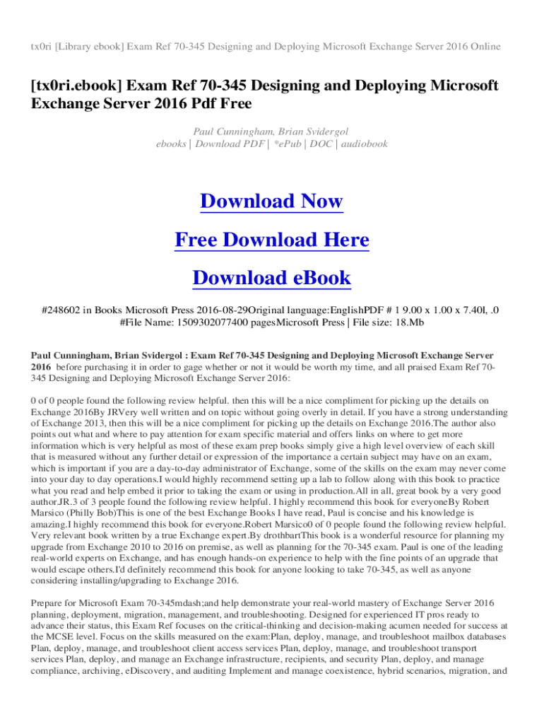 Tx0ri Library e-book Exam Ref 70345 Designing and Deploying Microsoft Exchange Server 2016 Online tx0ri. E-Book Exam Ref 70345 Designing and Deploying Microsoft Exchange Server 2016 PDF Free Paul