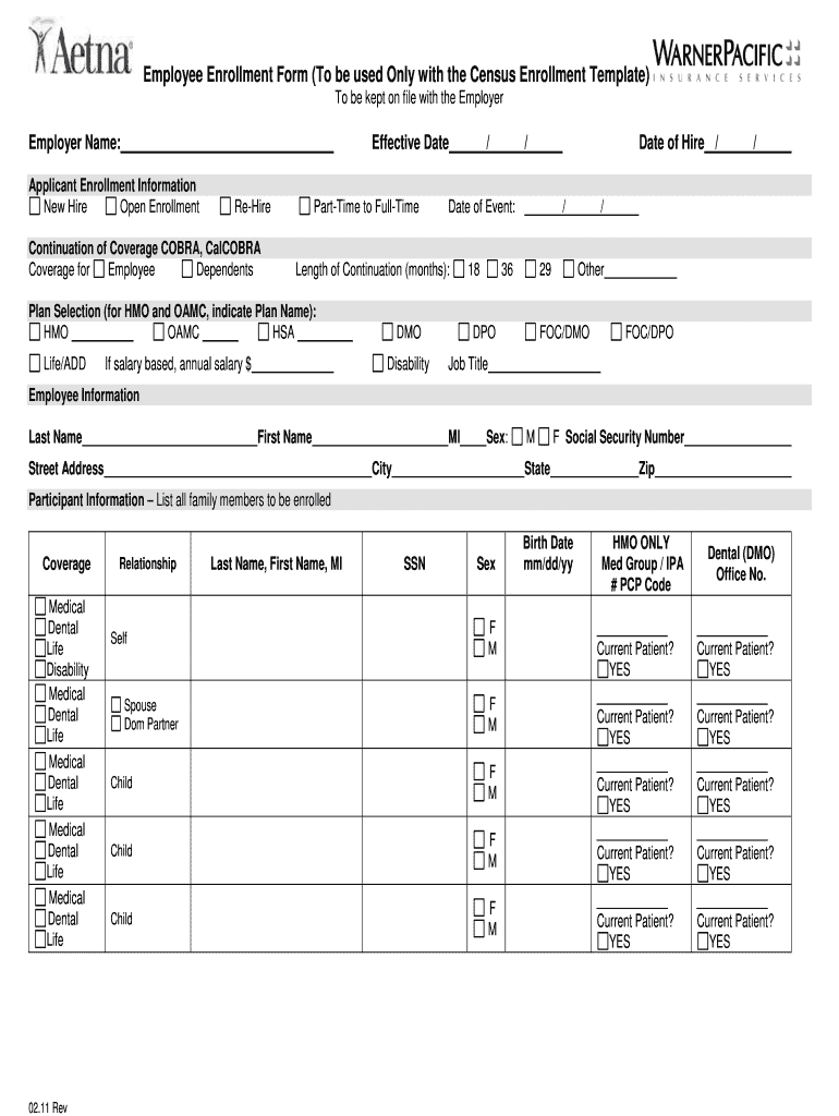 The California Employee Enrollment Form is a new hire paperwork document used by employers to enroll employees in health coverage plans.