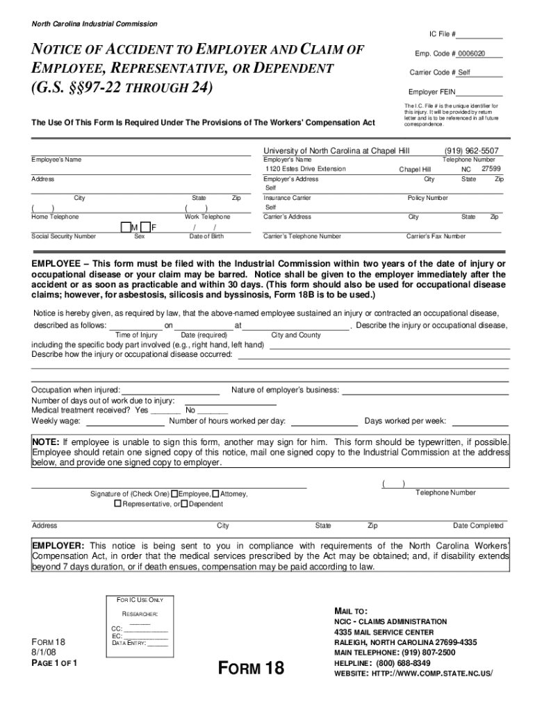Get the free Notice of Accident to Employer and Claim of Employee, Representative, or Dependent -...
