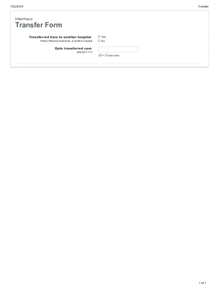 Intermacs Transfer Form is not the form you're looking for?Search for another form here.
