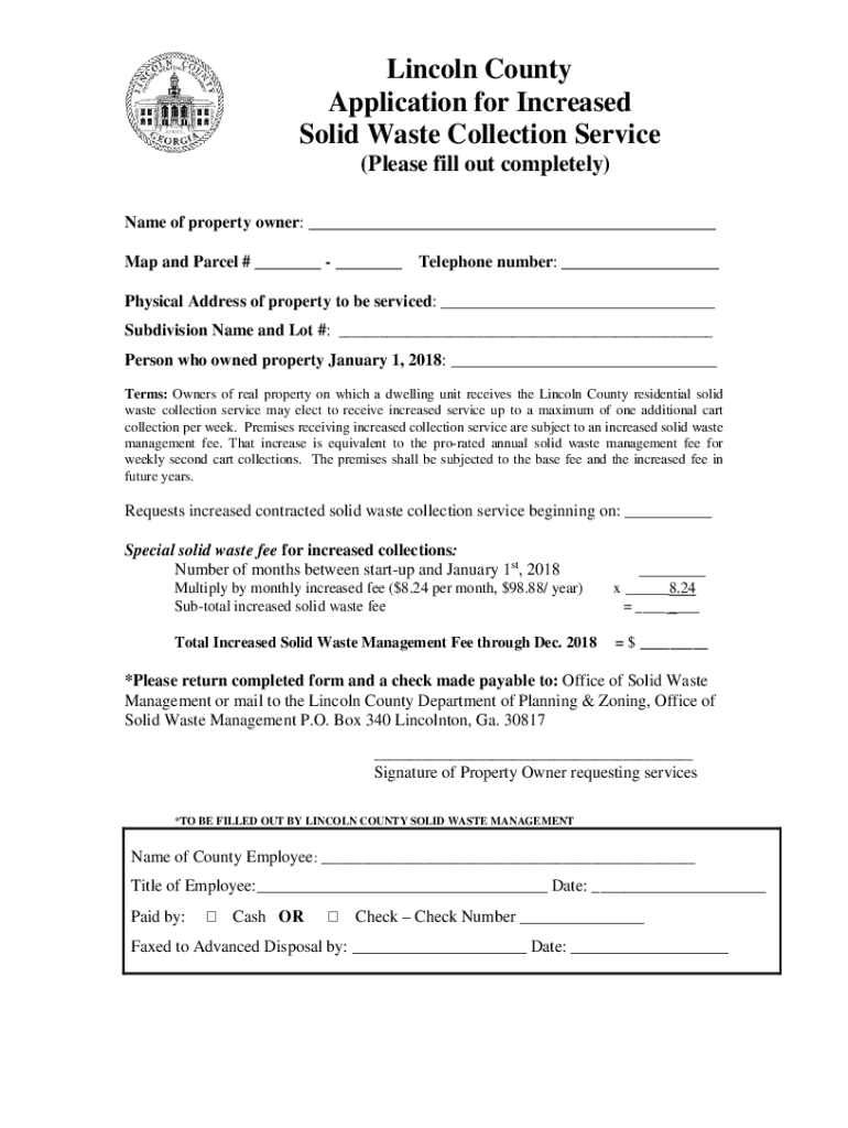 Get the free Lincoln County Application for Increased Solid Waste ...