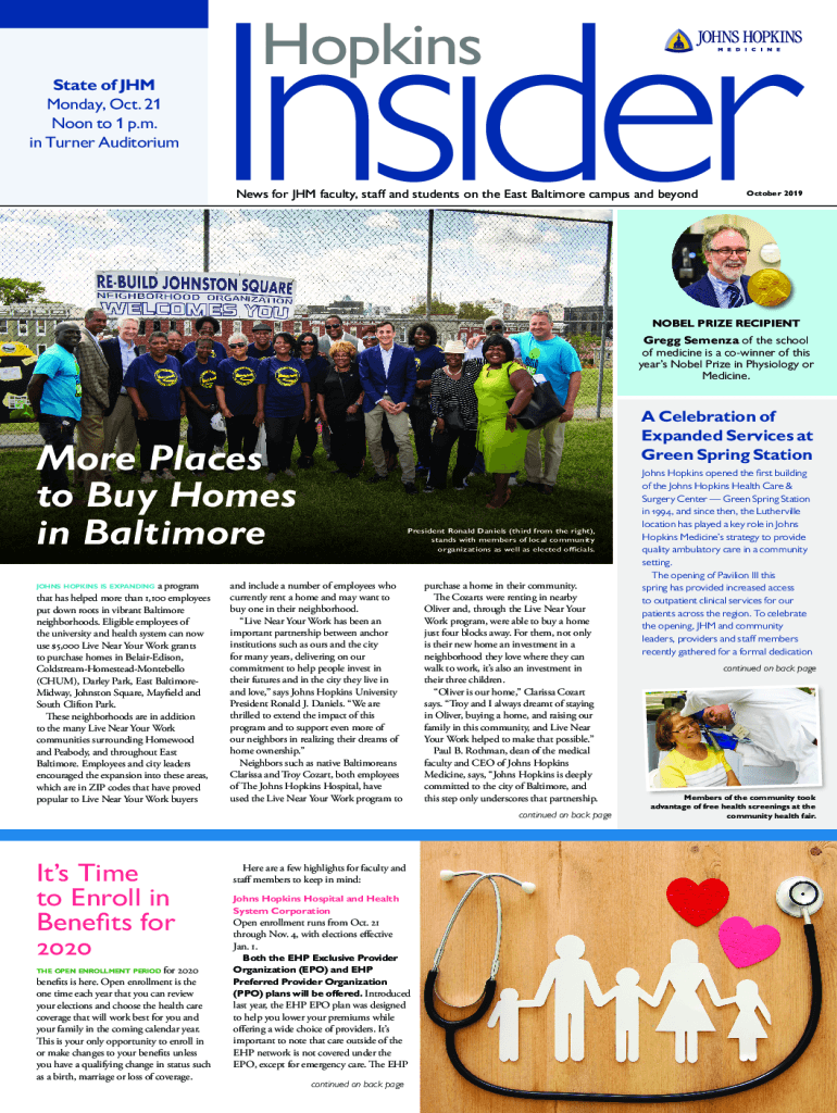 HopkinsNews for JIM faculty, staff and students on the East Baltimore campus and beyond October 2019NOBEL PRIZE RECIPIENT Gregg