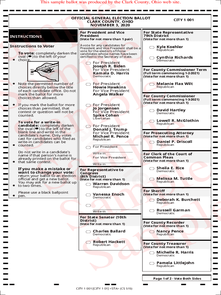 This sample ballot was produced by the Clark County, Ohio website. OFFICIAL GENERAL ELECTION BALLOT