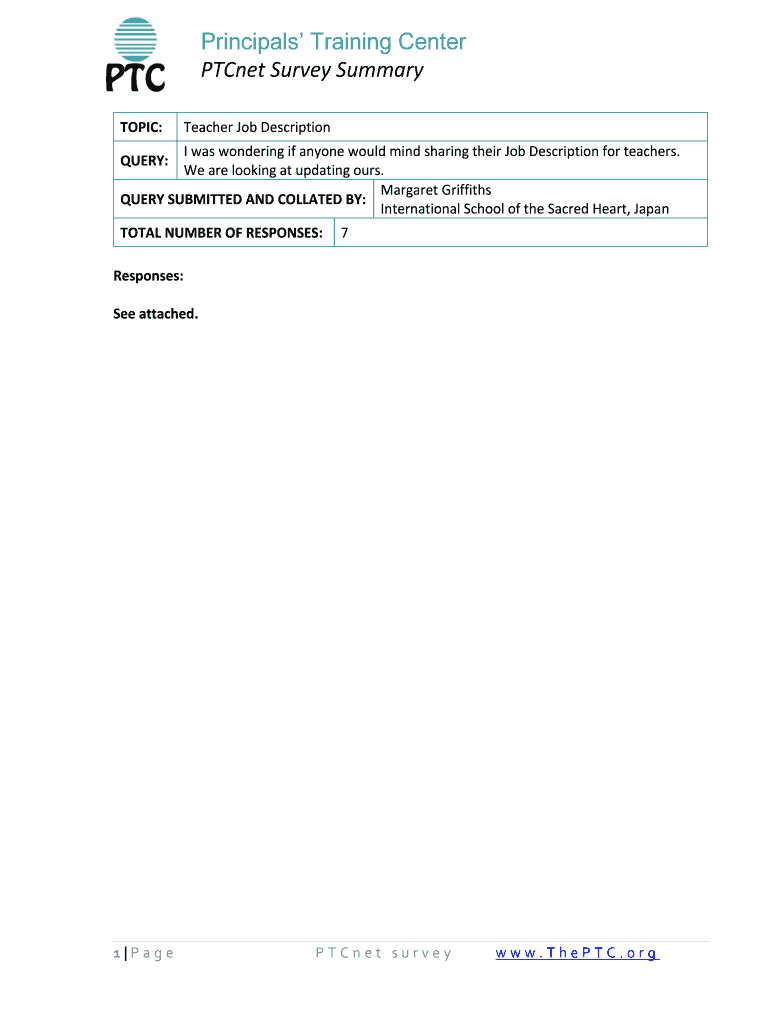 Get the free Teacher Job Description Form