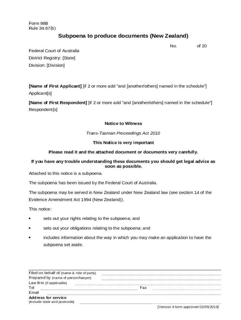 Template 98B - Federal Court of Australia instructions