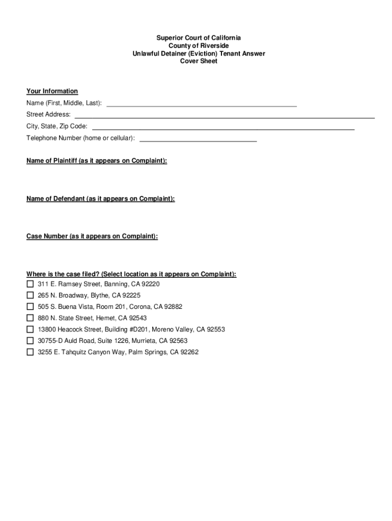 Print These Forms WARNING After clicking, “Print These Forms, packet will close and all data will be erased! Clear These Forms Superior Court of California County of Riverside Unlawful Detained
