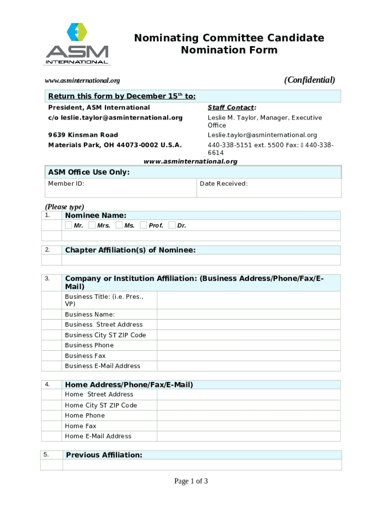 Nominating Committee Candidate - ASM International word template: frequently asked questions