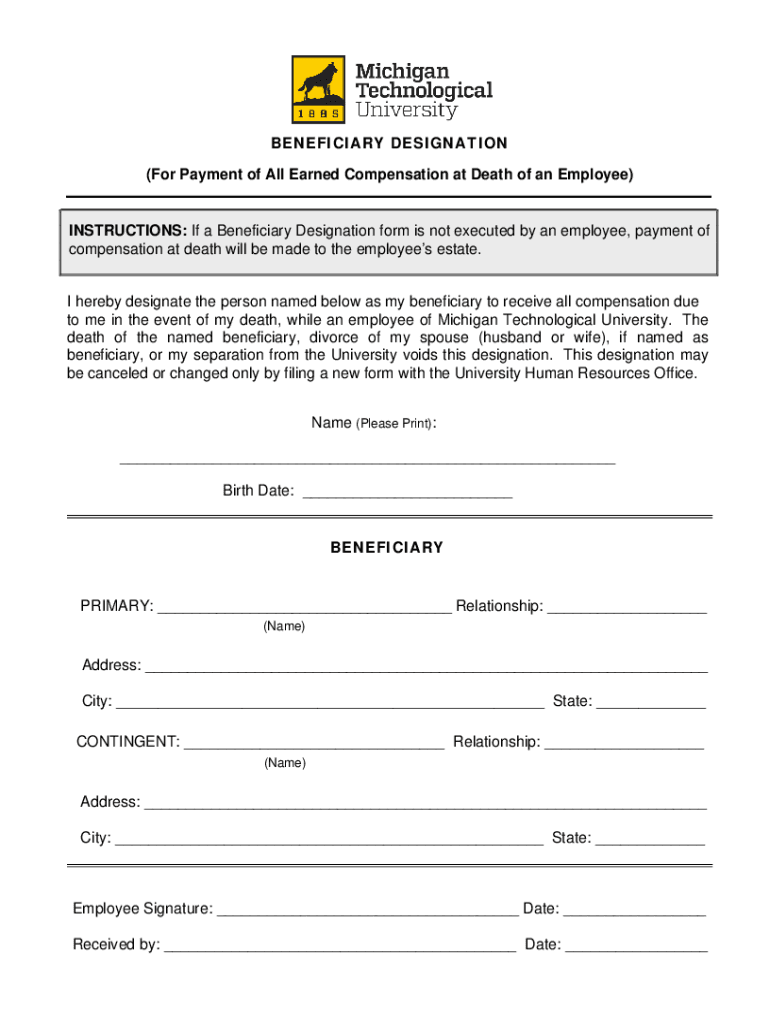 Get the free BENEFICIARY DESIGNATION (For Payment of All Earned ...