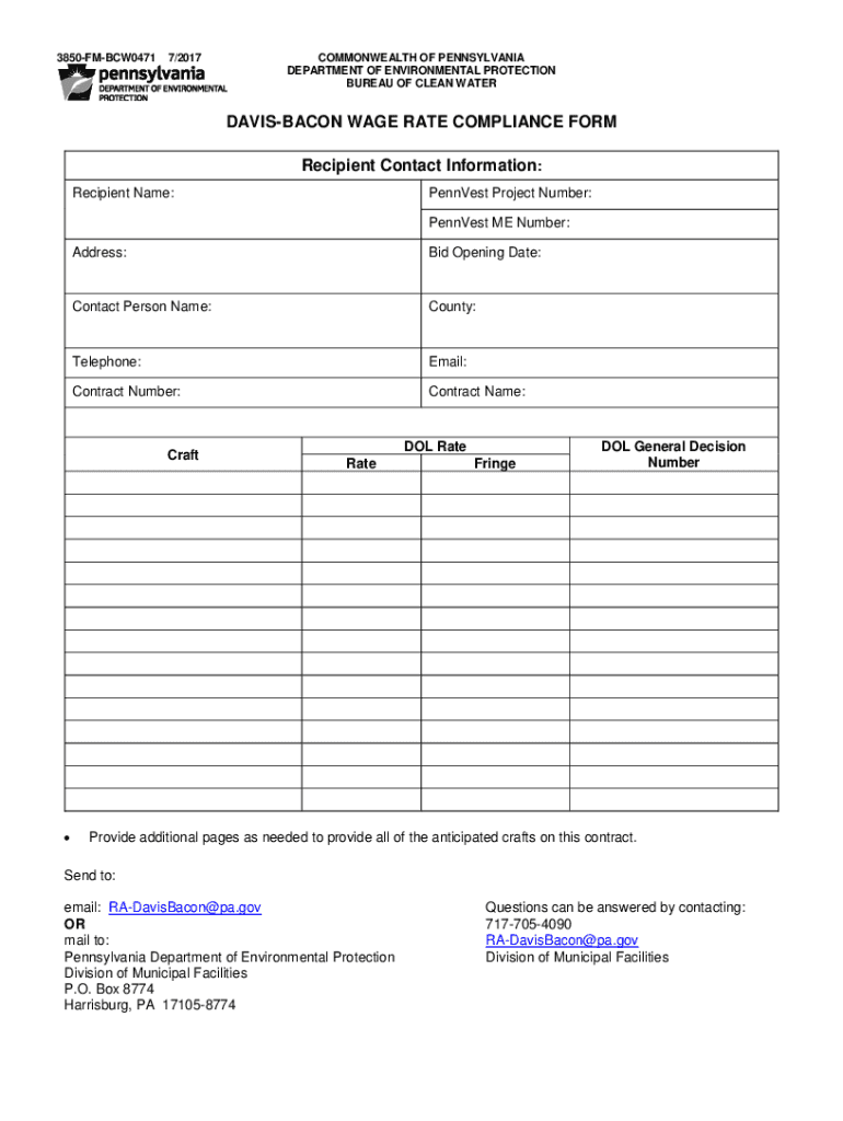 Get the free davis bacon wage rate compliance form - DEP Greenport
