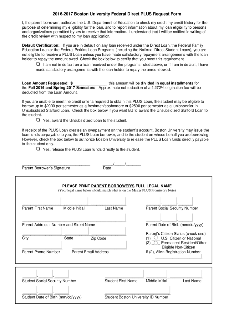 Get the free Federal Direct PLUS Loan Application Instructions 2016-2017