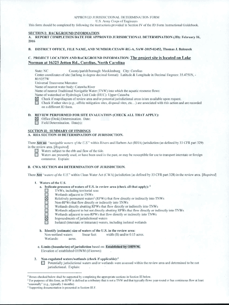 APPROVED JURISDICTIONAL DETERMINATION FORM. S. Army Corps of Engineers