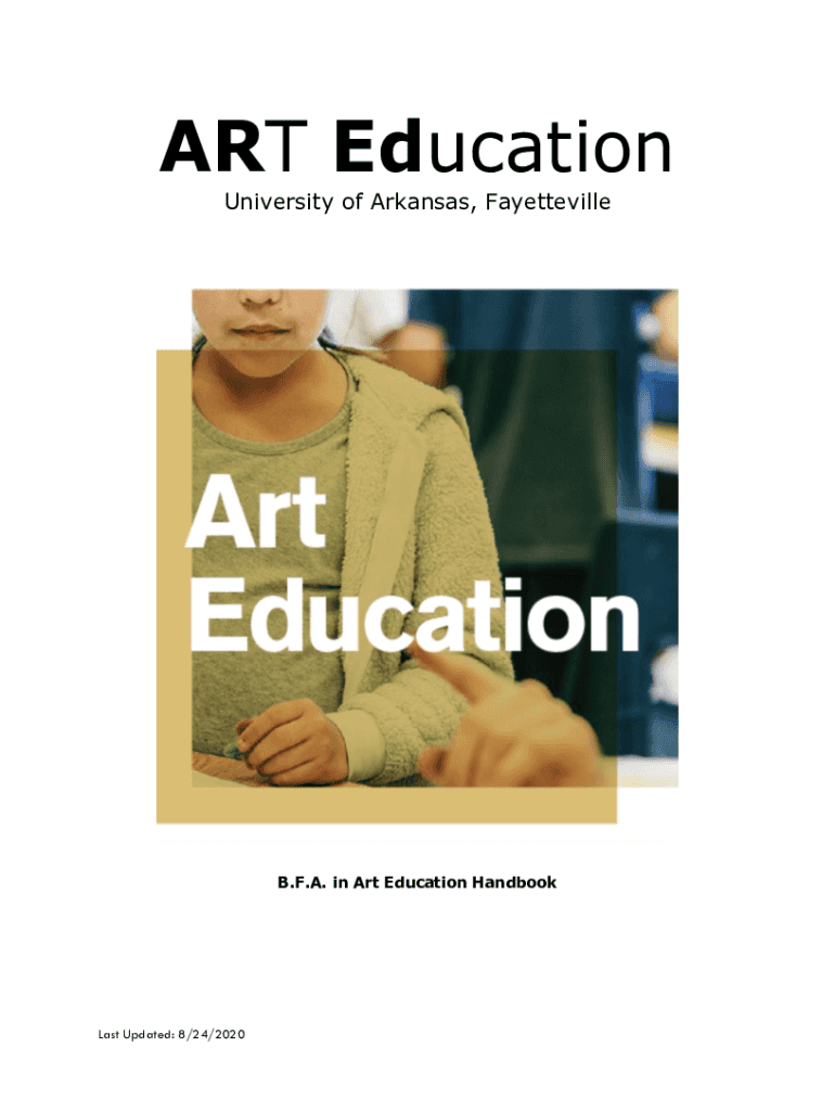 University of Arkansas, Fayetteville. F.A. in Art Education Handbooks Updated: 8/24/2020BFA in Art Education1TABLE OF CONTENTSMission, Vision, and Core Priorities2Program Overview and