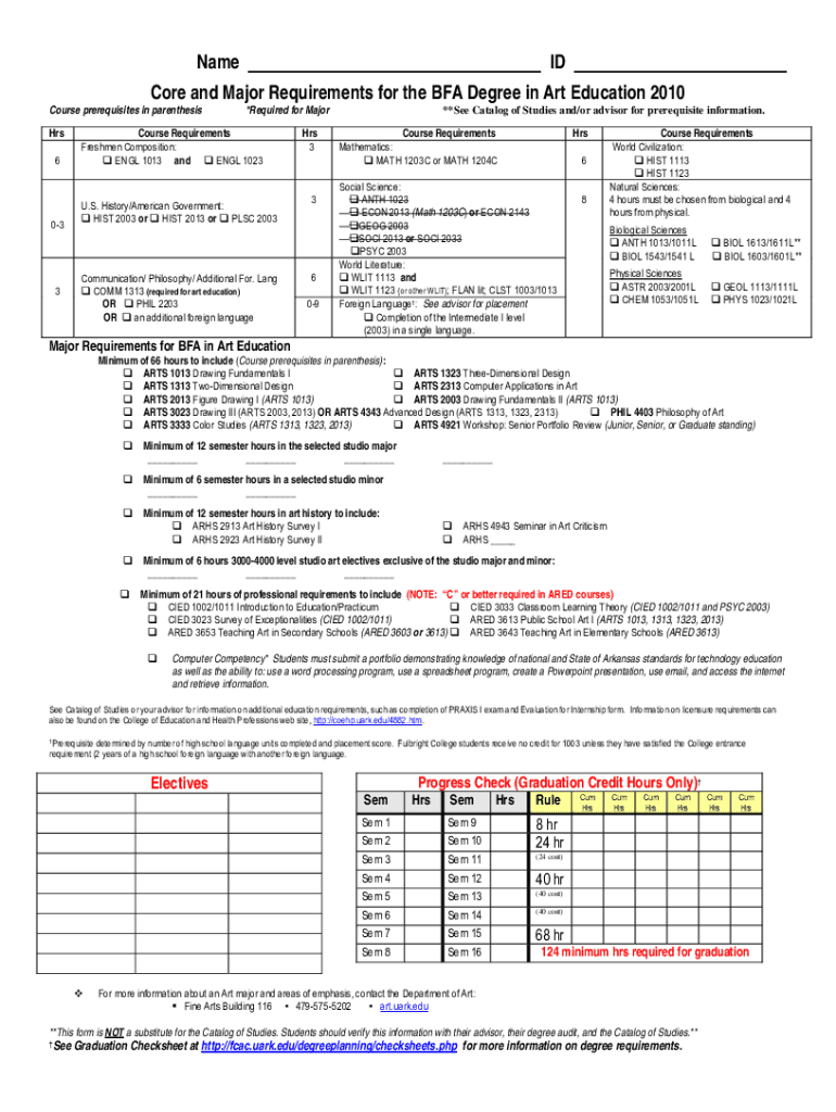 Get the free Name ID Core and Major Requirements for the BFA Degree in ... - fulbright uark