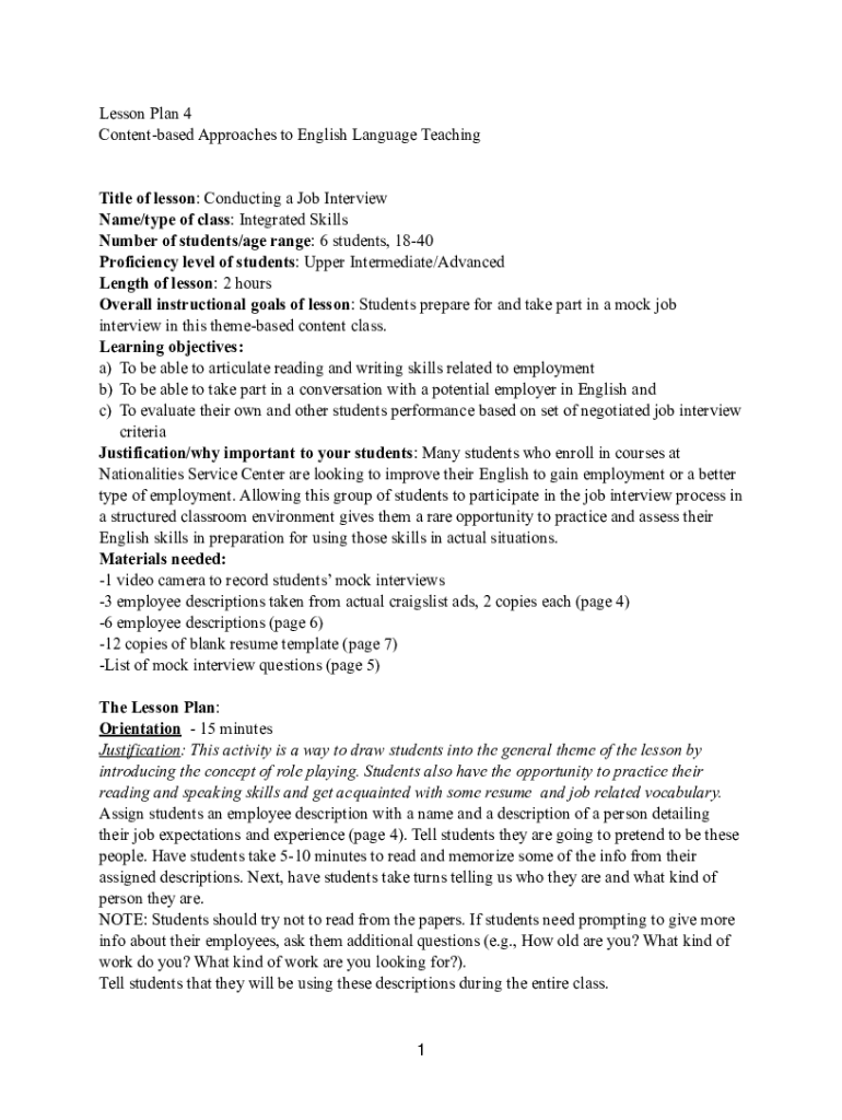 Content based Approaches to English Language TeachingTitle of lesson: Conducting a Job Interview
