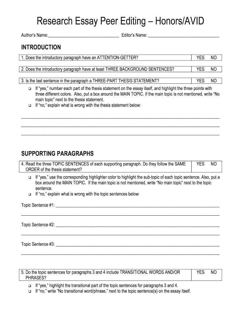 Get the free Research Essay Peer Editing Form