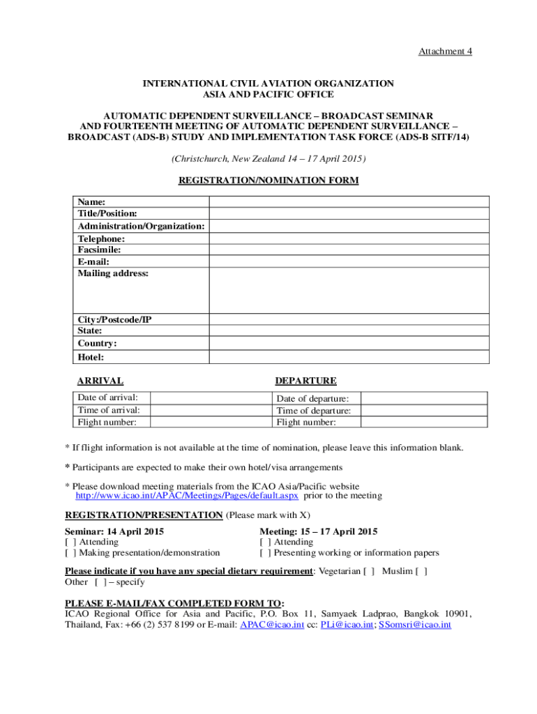Get the free Attachment 4 INTERNATIONAL CIVIL AVIATION ... - ICAO