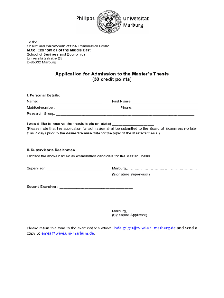 Get the free Application for Admission to the Masters Thesis (30 ...