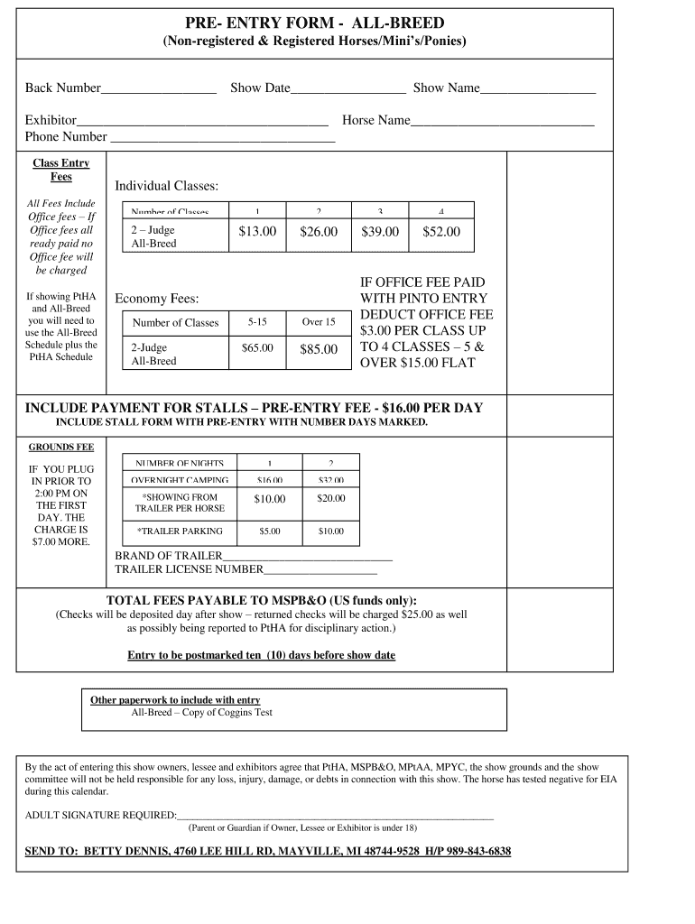 This form serves numerous purposes, enhancing the experience for exhibitors. A primary benefit of utilizing the All-Breed Horse Show Pre-Entry Form is the streamlined registration process, which minimizes complications during event setup.