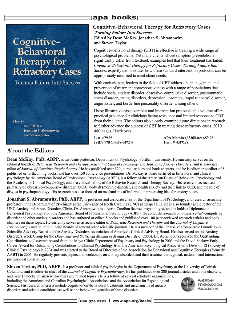 Key Features of the Cognitive-Behavioral Therapy for Refractory Cases Book Order Form