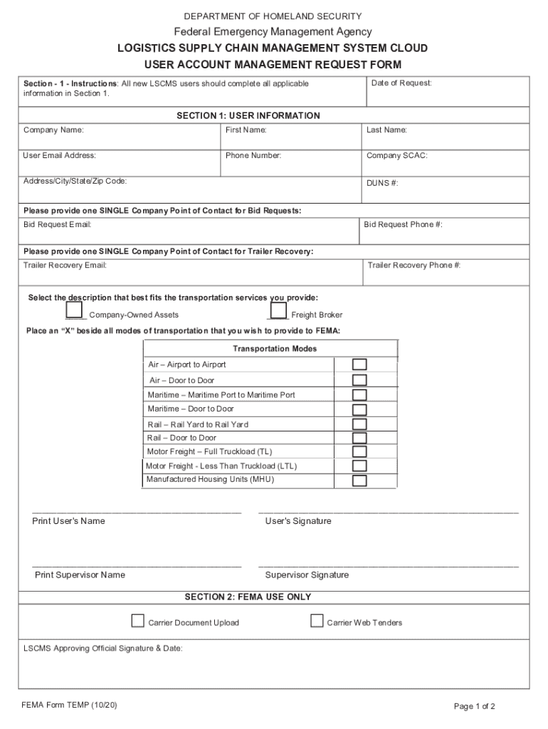Get the free LSCMS User Account Managerment Request Form - FEMA
