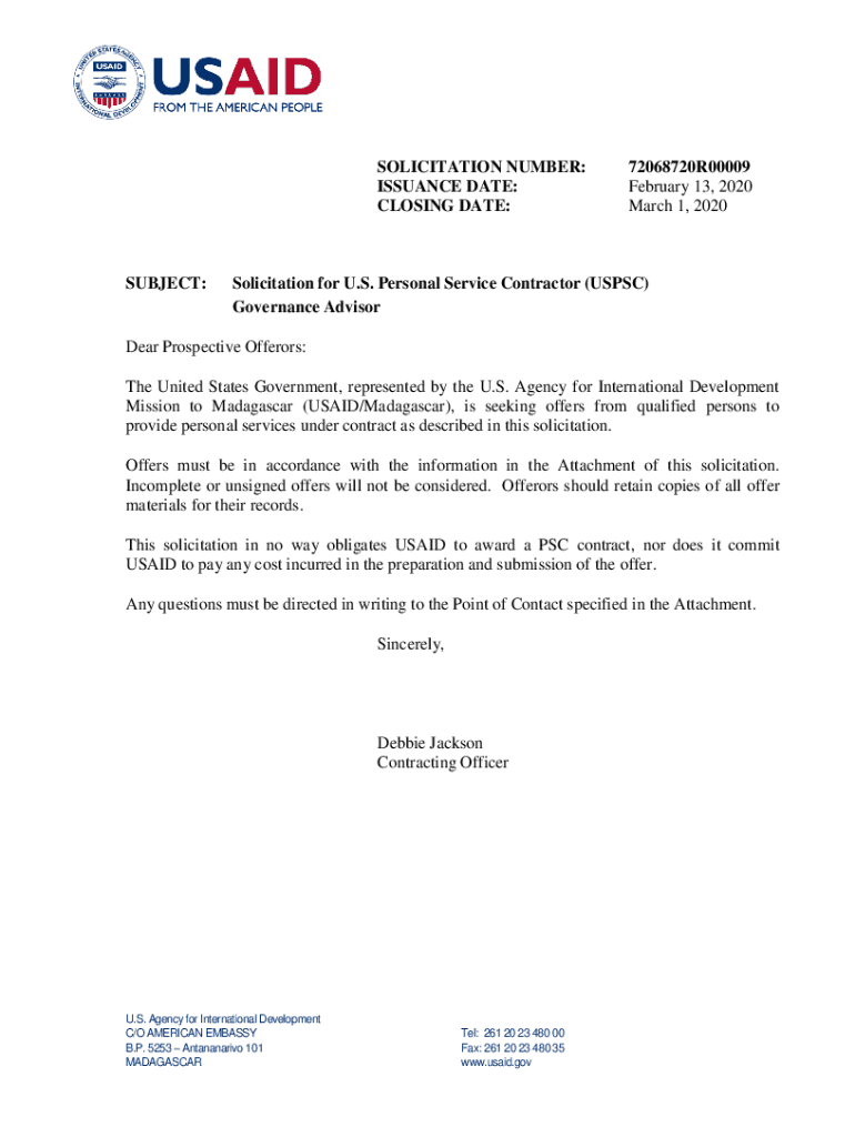 March 1, 2020Solicitation for U.S. Personal Service Contractor (USPS)