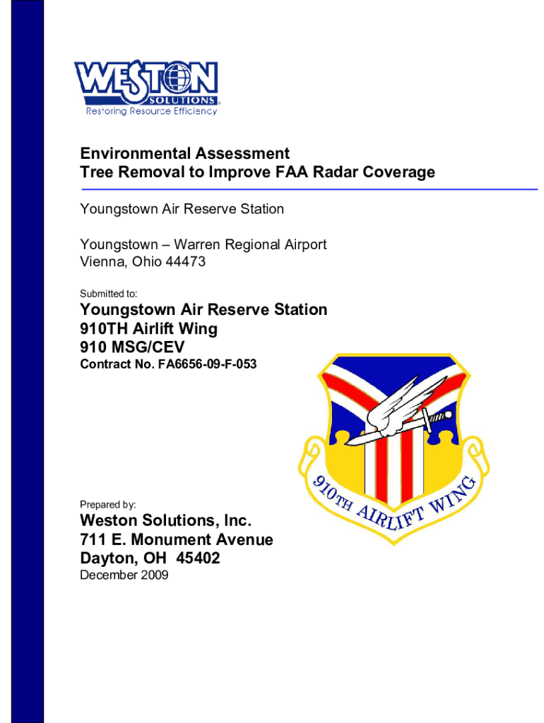 Environmental Assessment Tree Removal to Improve FAA Radar Coverage Youngstown Air Reserve Station Youngstown Warren Regional Airport Vienna, Ohio 44473 Submitted to:Youngstown Air Reserve Station