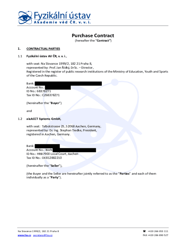 Purchase Contract (hereafter the Contract)1.CONTRACTUAL PARTIES1.1Fyzikln STAV AV R, v. v. i., with seat: Na Slovene 1999/2, 182 21 Prada 8, represented by: Prof. Jan DK, Disc. Director, Registered