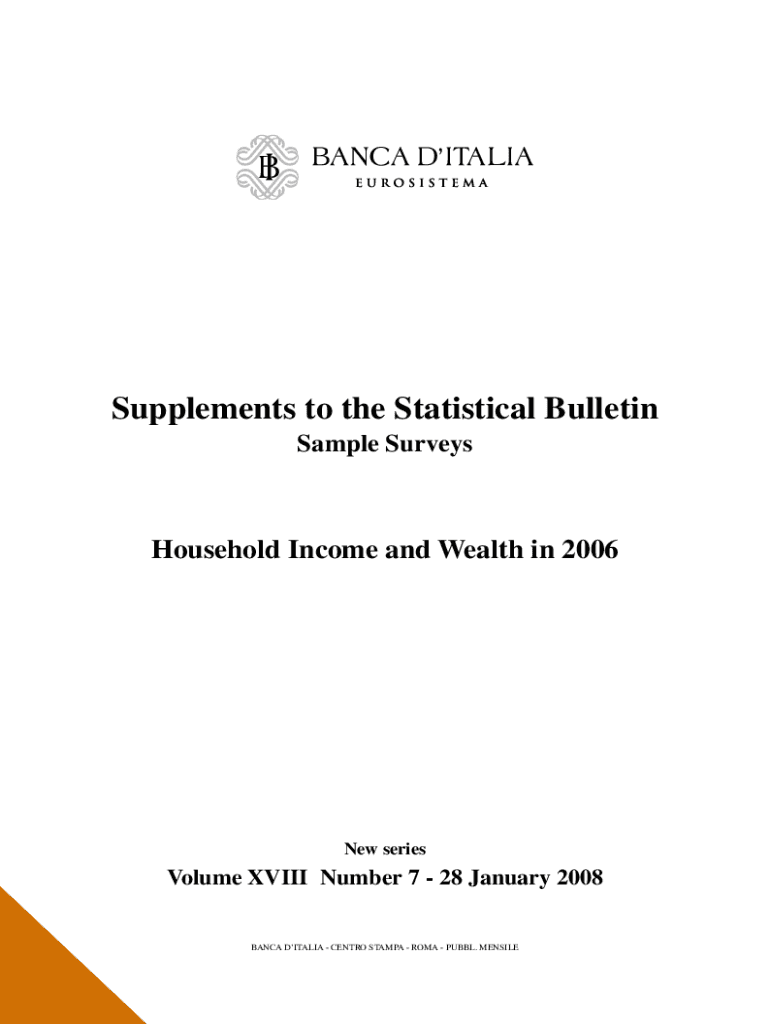 Supplements to the Statistical Bulletin Sample SurveysHousehold Income and Wealth in 2006New seriesVolume XVIII Number 7 28 January 2008 BIANCA ITALIA CENTR STAMP AROMA PU BBL. MENSILEGENERAL INFORMATION