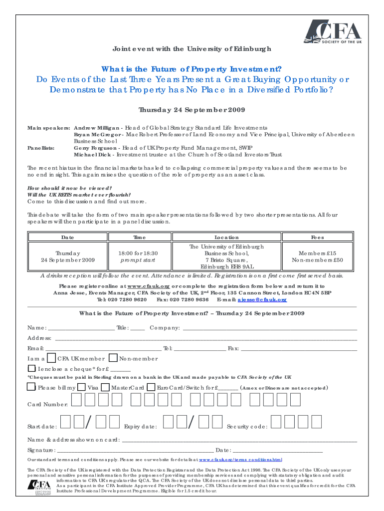Joint event with the University of Edinburgh What is the Future of Property Investment? Do Events of the Last Three Years Present a Great Buying Opportunity or Demonstrate that Property has No Place