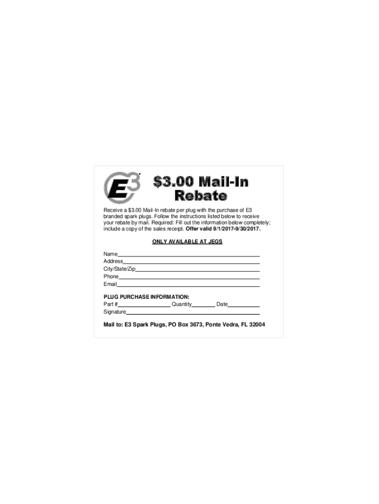 Receive a $3.00 Mailing rebate per plug with the purchase of E3