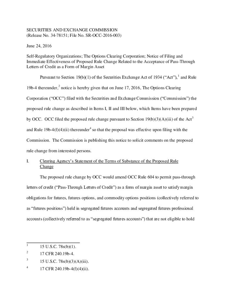SelfRegulatory Organizations; The Options Clearing Corporation; Notice of Filing and