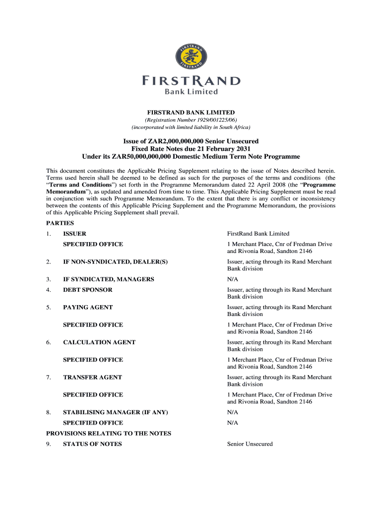 Get the free Issue of ZAR2,000,000,000 Senior Unsecured