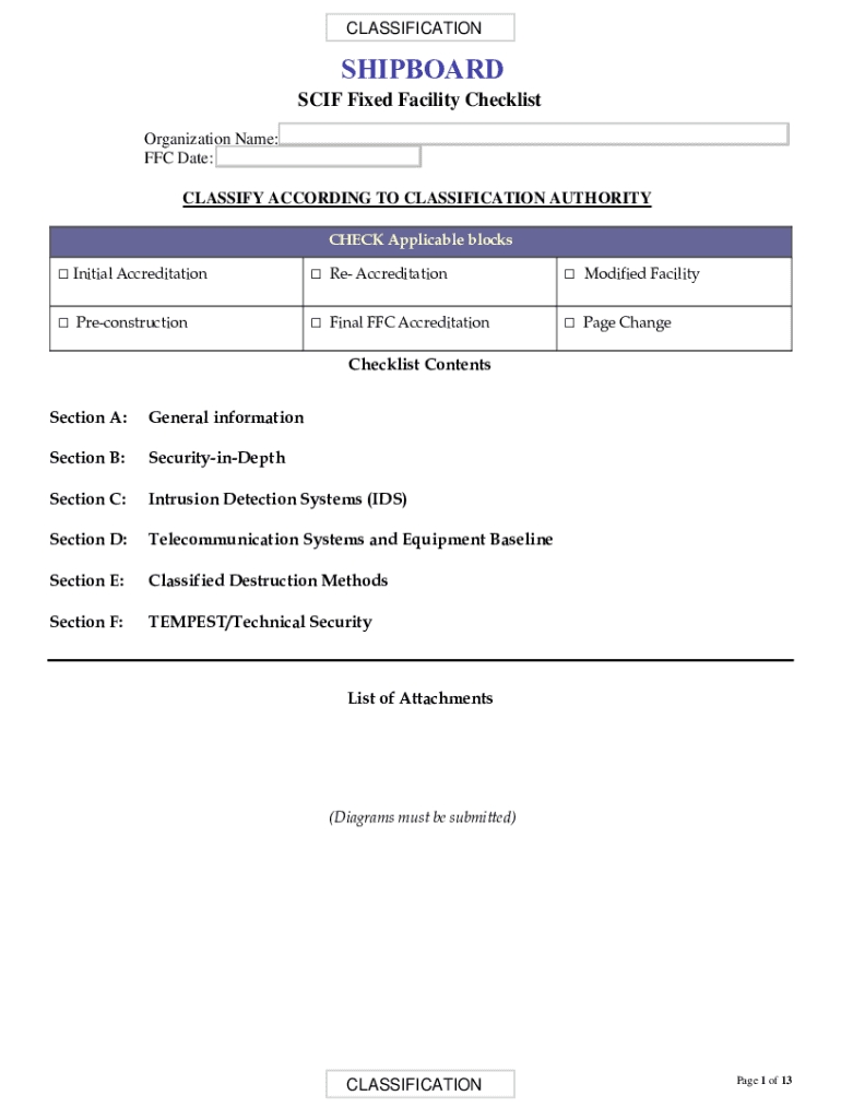 Get the free PDF ICS 705.1 Fixed Facility Checklist Guide - Army intelligence