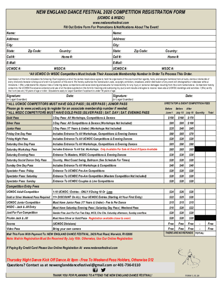 Get the free NEW ENGLAND DANCE FESTIVAL 2020 COMPETITION REGISTRATION FORM