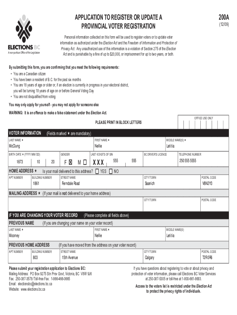 provincial voter registration200A