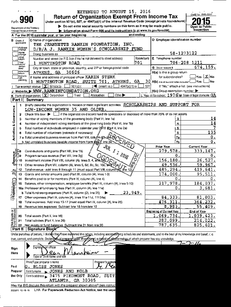 EXTENDED TO AUGUST 15,2016Return of Organization Exempt From Income Tax Under section 501(c), 527, or 4947(a)(1) of the Internal Revenue Code (except private foundations) Do not enter social security