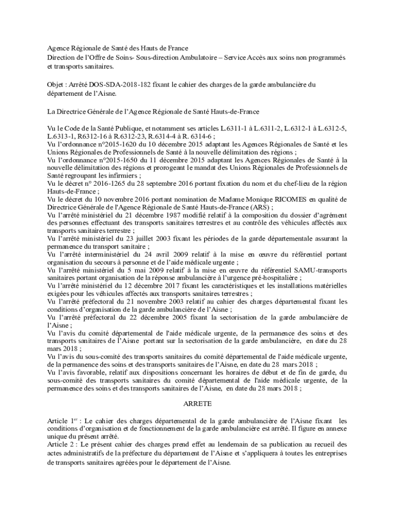 Agency Regional DE Sent DES Hauts-de-France Direction DE offer DE Sons Sous direction Ambulatory Service Acts aux sons non program set transports solitaires. Object : Art DOSSDA2018182 fix ant LE