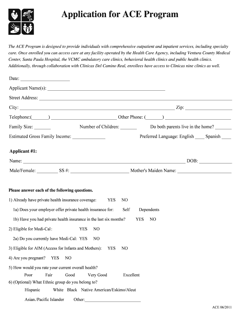 The ACE Program Application is a healthcare form used by individuals in California to enroll in the ACE Program, providing essential medical services.