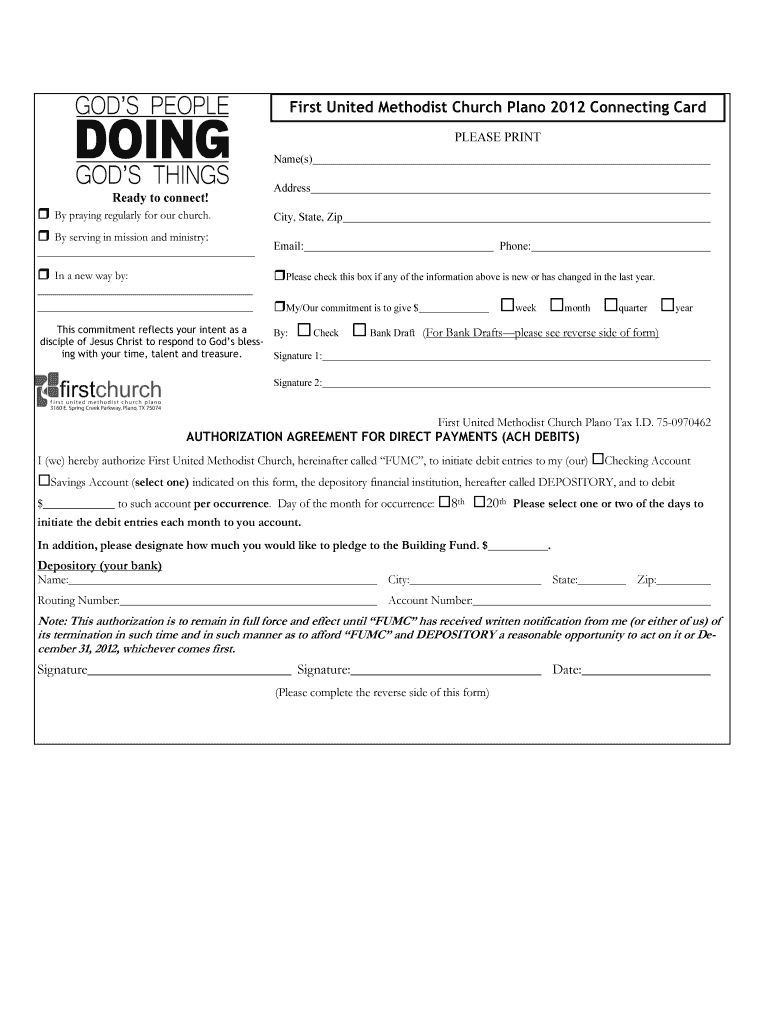 The First United Methodist Church Plano Connecting Card is designed for both existing members looking to renew their commitments and new members who wish to engage more deeply within the church community. Scenarios requiring the completion of this form include: