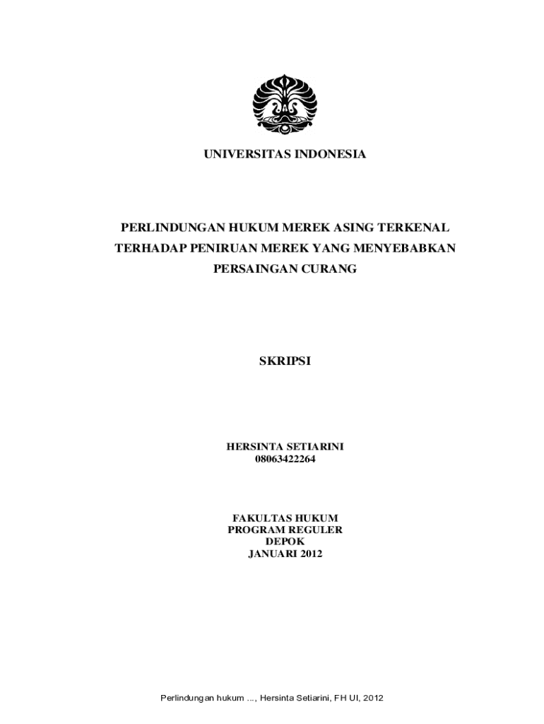 Get the free universitas indonesia perlindungan hukum merek ... - Perpustakaan UI