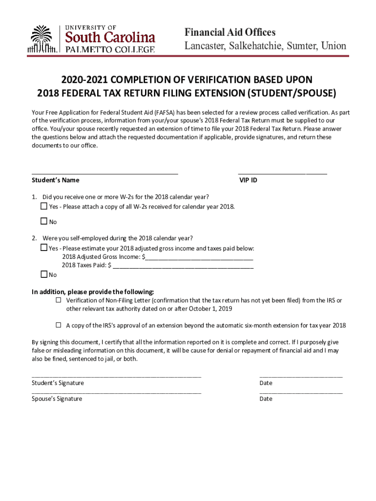2018 FEDERAL TAX RETURN FILING EXTENSION (STUDENT/SPOUSE)